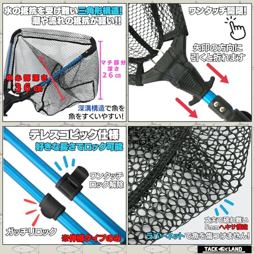 【TACKLAND】 ランディングネット たも網 ワンタッチ折り畳み式