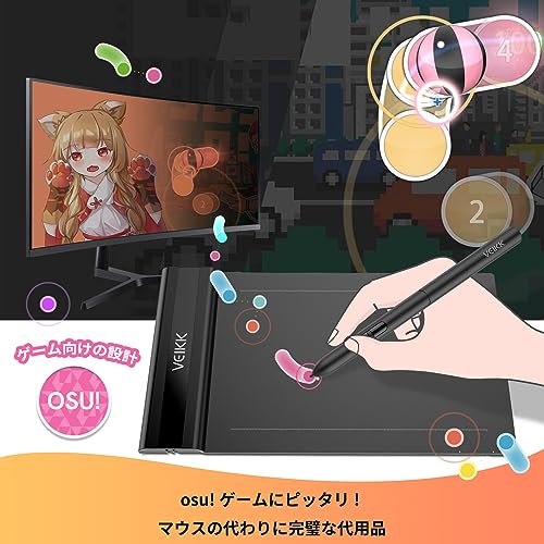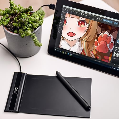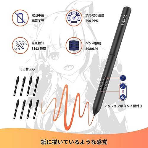 おすすめの初心者におすすめしたい安めのペンタブレットの1つ目はVEIKK ペンタブ 6×4インチ スマホ対応です。このペンタブレットは、手頃な価格でありながら、8192レベルの筆圧感知機能を備えており、滑らかで正確な描写が可能です。そのため、デジタルアートの基本を学びたい初心者や、手軽にイラストを楽しみたい方に特におすすめします。