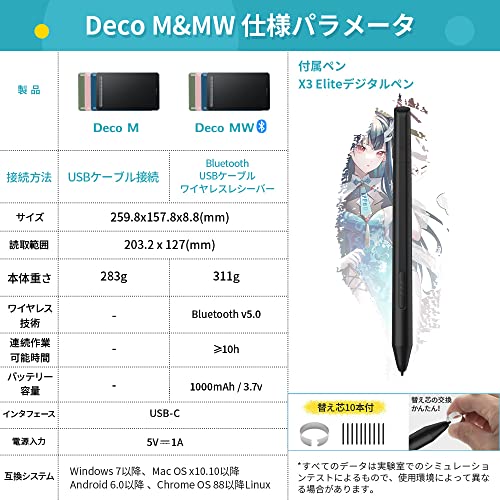 XPPen ペンタブ Deco MW Bluetoothは、ワイヤレス接続が可能なので、場所を選ばずに使える利便性が魅力です。8192レベルの筆圧感知機能により、細かい線の変化も捉えられ、自然な描き心地を実現します。初心者でも使いやすい直感的な操作性と、手ごろな価格でデジタルイラストの世界への第一歩に最適です。