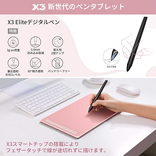 XPPen ペンタブ X3 Proペン ペンタブレットは、革新的なX3スマートチップを搭載し、従来のペンタブレットに比べてより自然で滑らかな描写体験を提供します。8192レベルの筆圧感知機能と60度の傾き検知機能を備えており、細かい線の変化も捉えることができるため、イラスト制作やデジタルアートの学習に最適です。加えて、手頃な価格設定でありながら高性能を誇るため、初心者からプロフェッショナルまで幅広いユーザーにおすすめできるペンタブレットです。